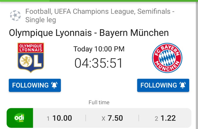 Uefa Champions League Lyon Vs Bayern Munich Semi Final Live