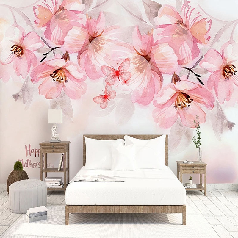 Custom Photo Romantic Hand Painted Watercolor Pink Cherry Trees Decoration Wall Painting Girls Room Bedroom Wall Mural Wallpaper Wallpapers Aliexpress