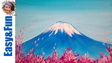 Simple Painting In Acrylic Mt Fuji Cherry Blossom Live