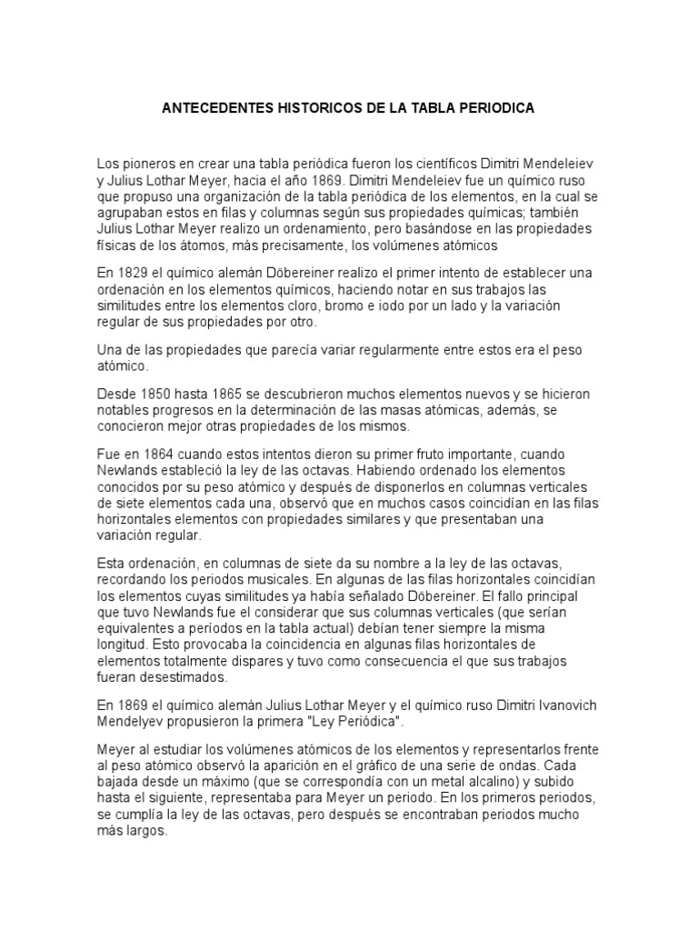 Antecedentes Historicos De La Tabla Periodica Tabla Periodica Elementos Quimicos