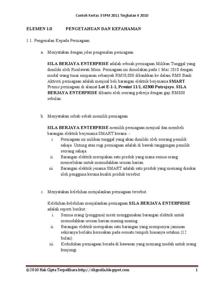 Contoh Pengenalan Perniagaan Kerja Kursus Ting 4 2011