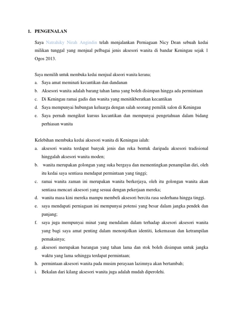 Contoh Perniagaan 2 Docx Docx Document