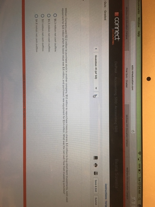 Milliken Company Paid 2 2 Million To Purchase Stock In Another Company 1 0 Million To Repurchase Treasury Shares 0 5 Million To Buy Short Term Investments Sold Used Equipment For 0 8 Million Wh Study Com