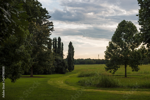 Park Smooth Green Lawn Beautiful Trees Picturesque Clouds