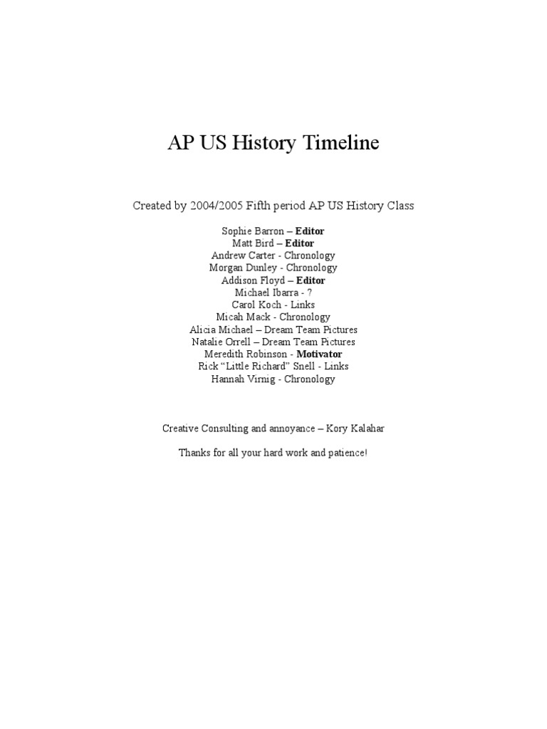 Apush Timeline Abraham Lincoln World War Ii