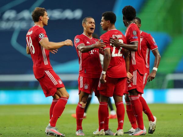 Hansi flicks men set up mouthwatering champions league final against psg as serge gnabrys first half double and robert lewandowskis 55th goal of the season see off.