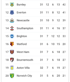 Premier League Table Final Week 28 2020 Standings Results And